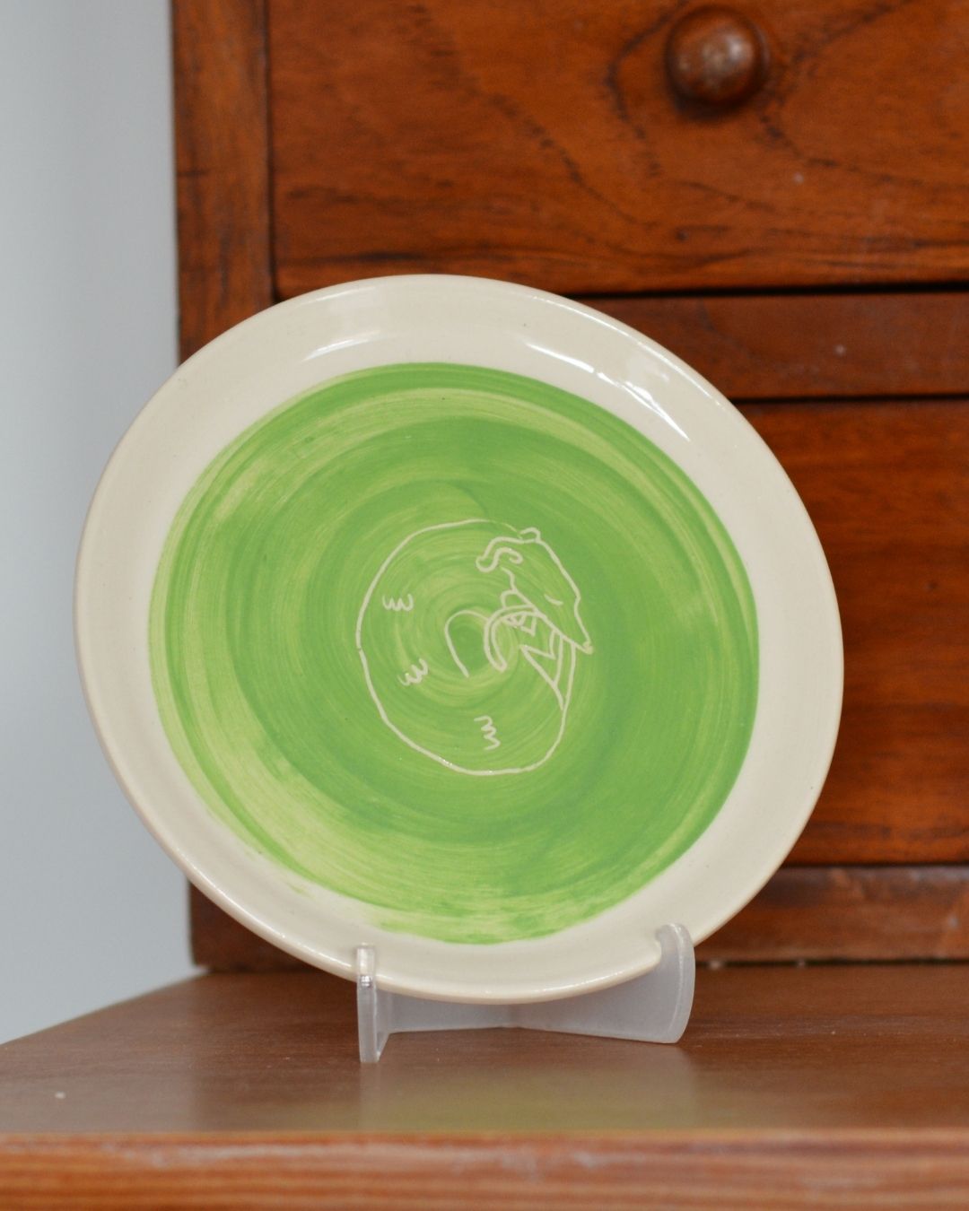 Plato Galgo, hecho y pintado a mano en gres.